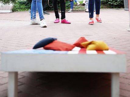 To complement your party theme, use custom vinyl to personalize your card display, serving table, centerpiece, or cornhole. Deck out your party with a school mascot, motto, or logo!