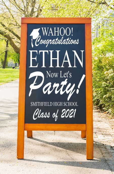 Deck out your lawn with a custom sign congratulating the graduate at home! You can add a name, nickname, school, degree, valedictorian, mascot, or year.