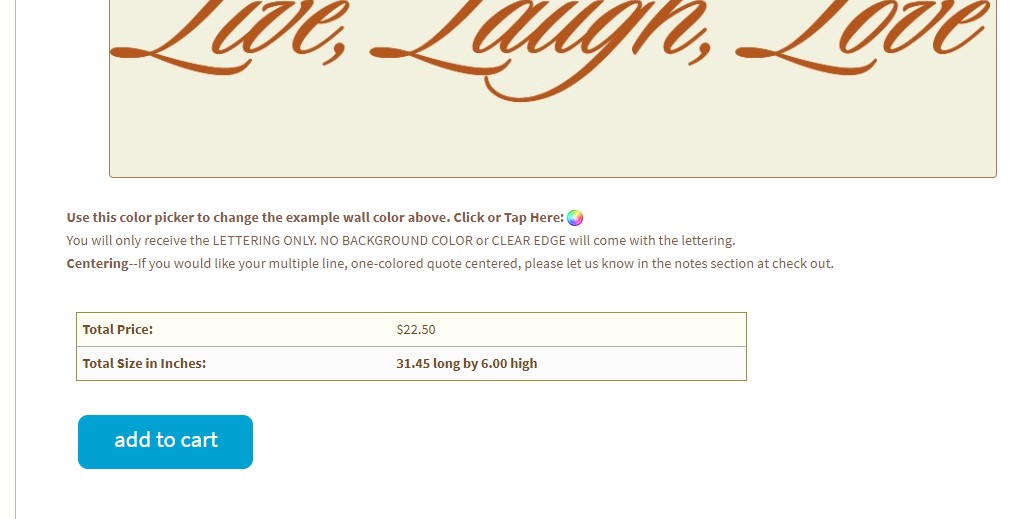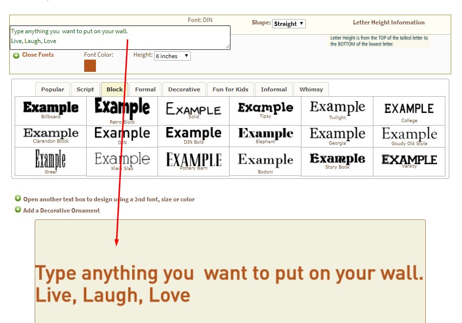 Here’s a visual example of how to make a custom wall decal designed using the VinylWallExpressions.com lettering designer page: