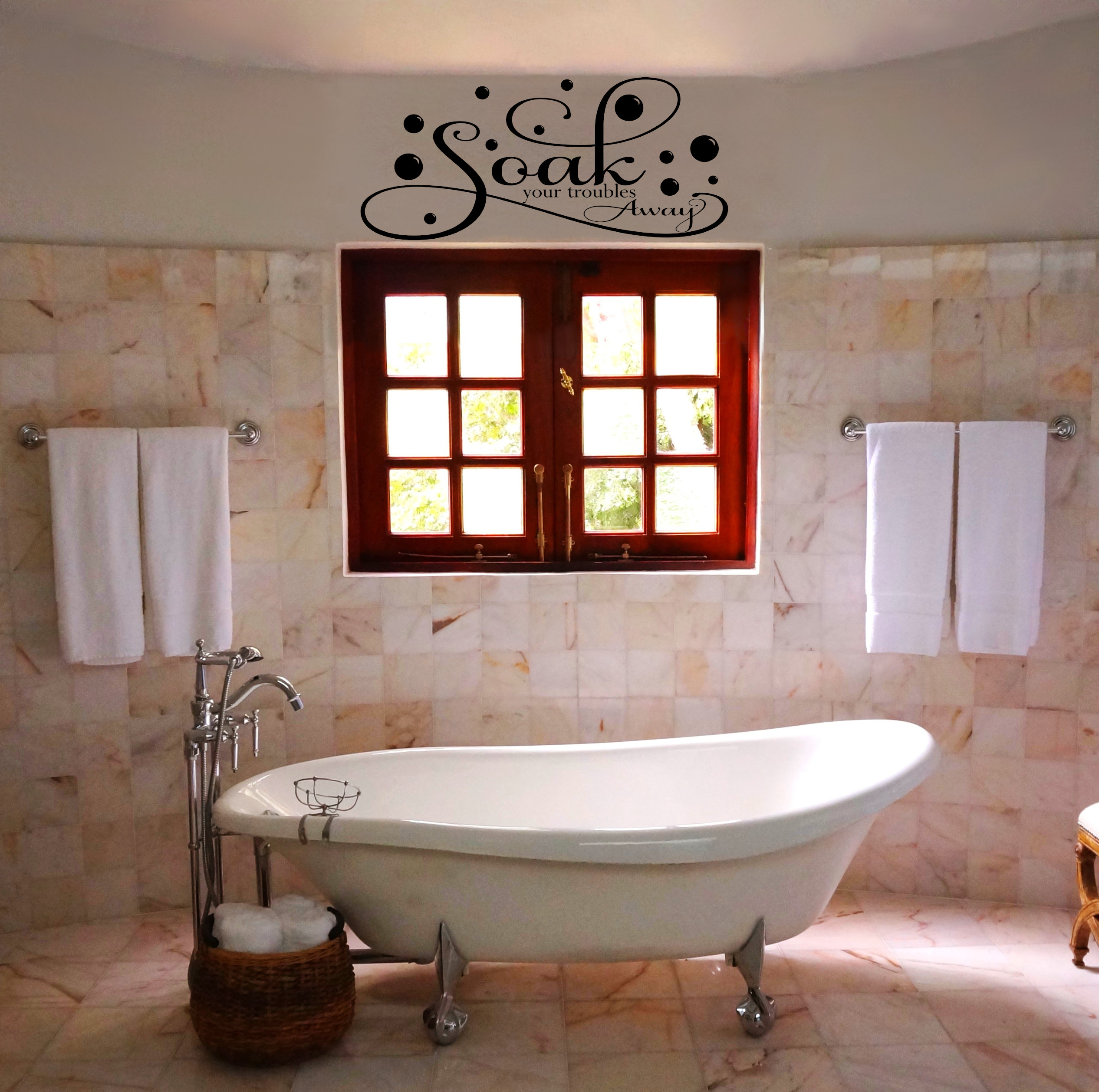 Soak your troubles away Relaxation Bathroom Wall Decal Spa Wall Quote Vinyl Wall Lettering -B105